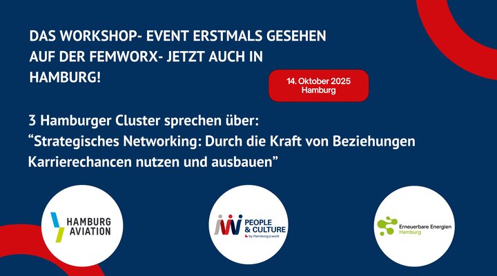 Dieser Workshop ist eine gemeinsame Initiative der drei Cluster Erneuerbare Energien Hamburg (Clusteragentur), Hamburg Aviation | Luftfahrtcluster Hamburg und Hamburg@work | Digitalcluster Hamburg, die ihre Expertise bündeln, um Networking über Branchen- und Unternehmensgrenzen hinweg zu fördern.